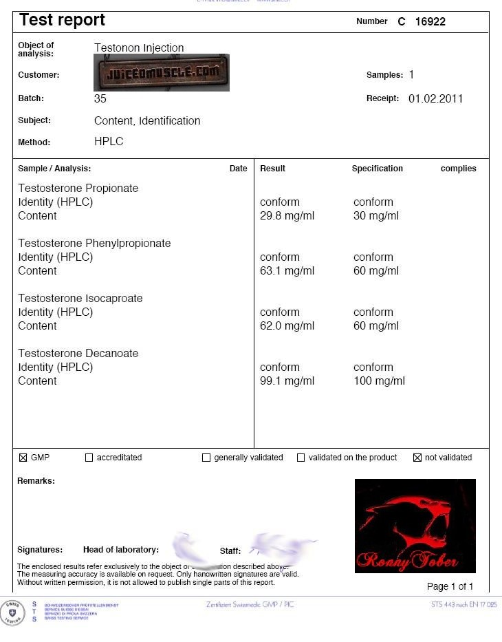 Then there is only one thing you can do to prove them wrong and that is analyse the product. The problem with Sustanon is that it contains four esters of Testosterone, Propionate, PhenylPropionate, Isocaproate and Decanoate. That means you have to run four analyses with the Pharmaceutical Reference Standard (PRS) most abbriavated to Standard.